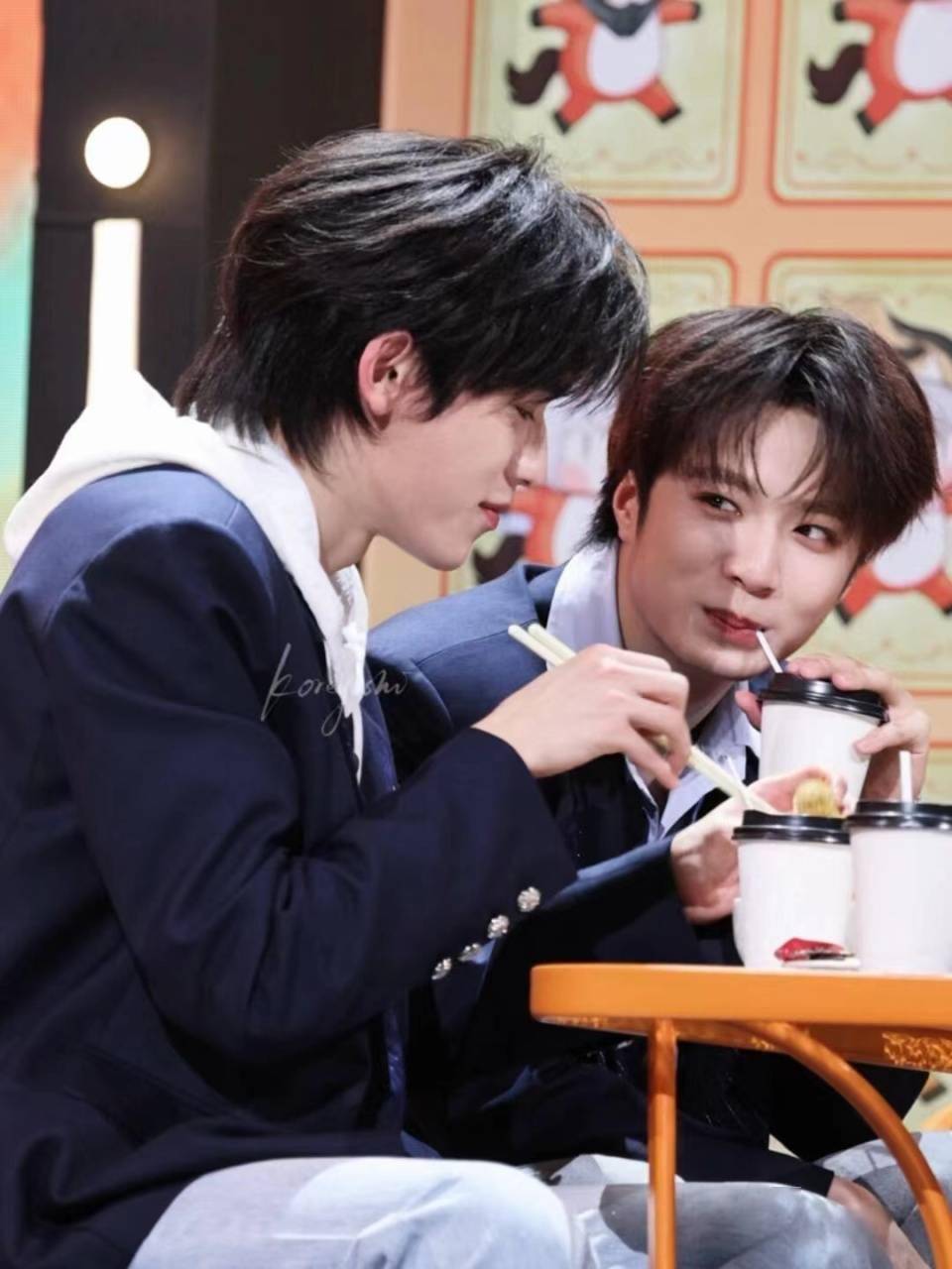 综艺中刘耀文让宋亚轩夹臭豆腐,宋亚轩先夹给他,又自然地夹回一块自己吃,全程无需言语。