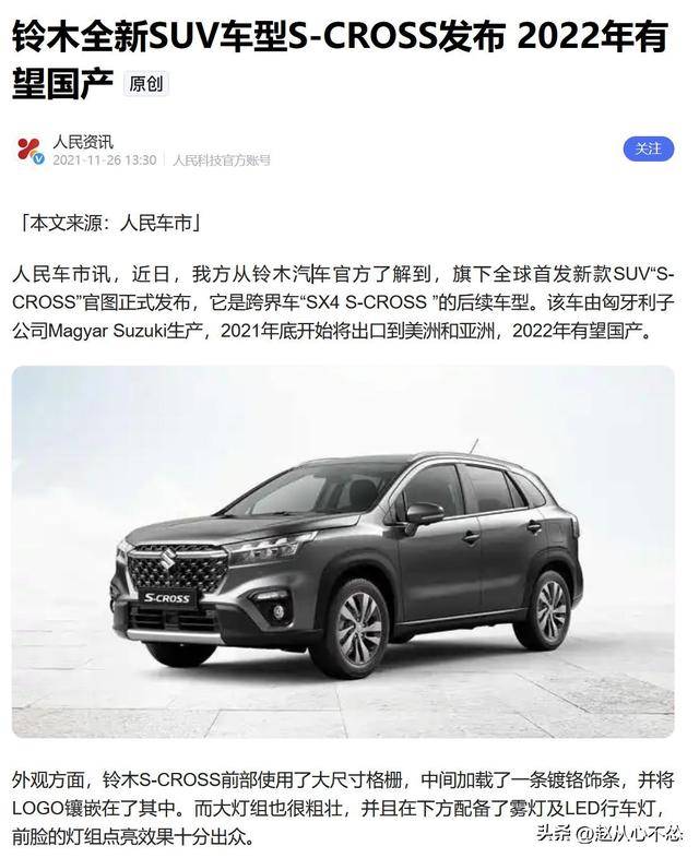 要知道,SUV是铃木曾经最不屑的车型,更是中国市场的主流,这样的举动,很难不让人联想到它对中国市场的觊觎。