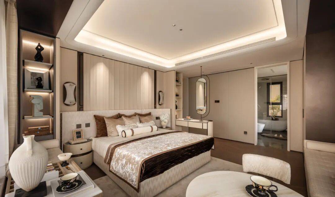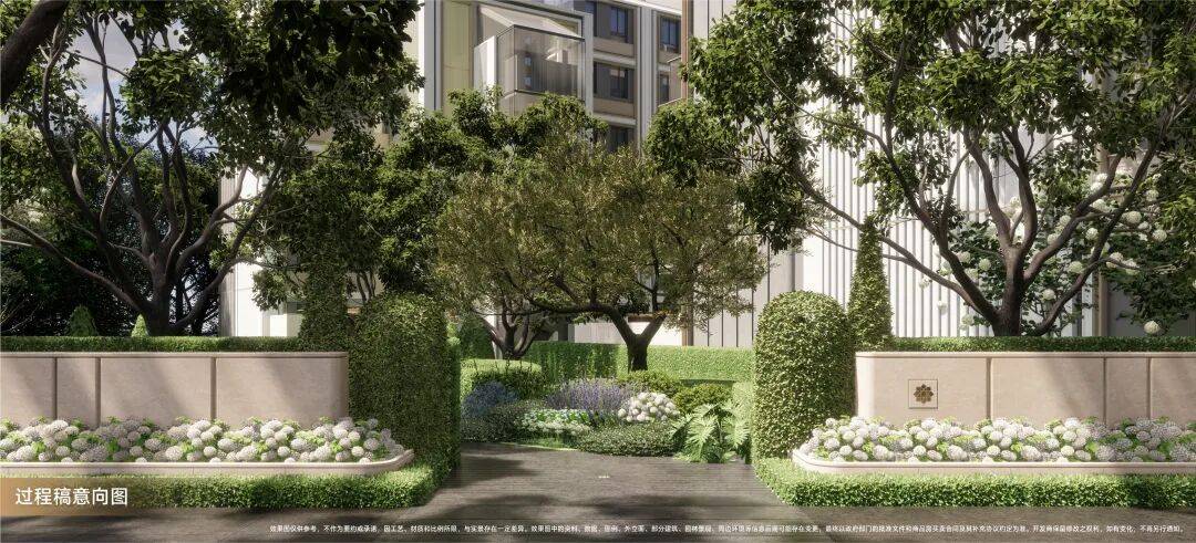 在景观营造上,以英国邱园及德寇特花园为灵感蓝本,打造“东韵西境”的立体园林约3000㎡立体鎏金泛会所及架空层,隐于绿意之间,涵盖恒温泳池、瑜伽室等功能空间,为高净值人群圈层提供交流场域。