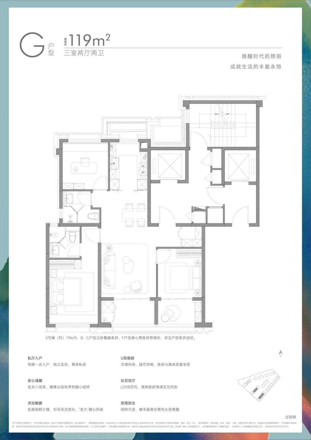 项目首推建面约117-139㎡3-4房,你想要的“类独立电梯厅”、“双阳台高实得率”、“大面宽”、“270°灵动飘窗”等应有尽有。
