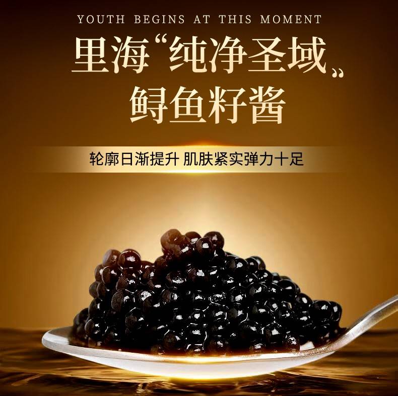 以“科技PQQ x 奢宠鲟鱼子酱”为创新双核抓手,定位40岁及以上熟龄女性。整体逻辑瞄准熟龄女性抗衰综合需求——淡纹、紧致、美白、轮廓提拉——将顶级科研与国际珍稀原料深度融合。