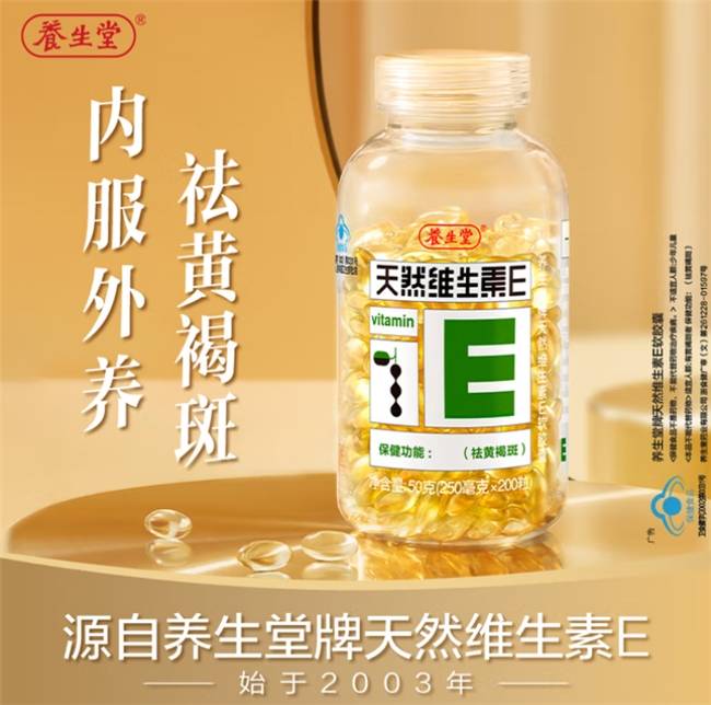 养生堂靠“淡斑抗老”成热销款,VE从云南高原小麦胚芽提取,物理冷榨保留97%活性,纯度达96%。还添加紫苏油和红花籽油,亚油酸能帮VE更好吸收,获国家认证“祛黄褐斑”功效。用户反馈“吃6个月,脸上的斑淡了,皮肤也更嫩”,是爱美人群的热门选择,常年稳居热销榜前列。