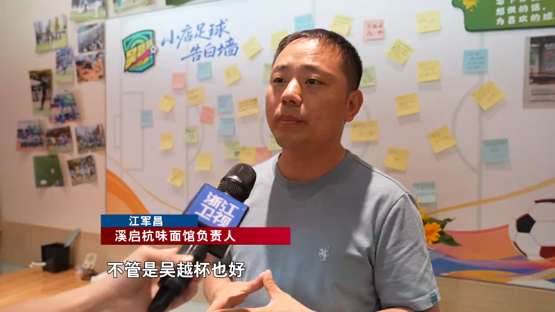 溪启杭味面馆负责人 江军昌:不管是吴越杯也好,青少年足球也好,其实是需要更多地去宣传,能够让大家有一个地方去参与、去互动。